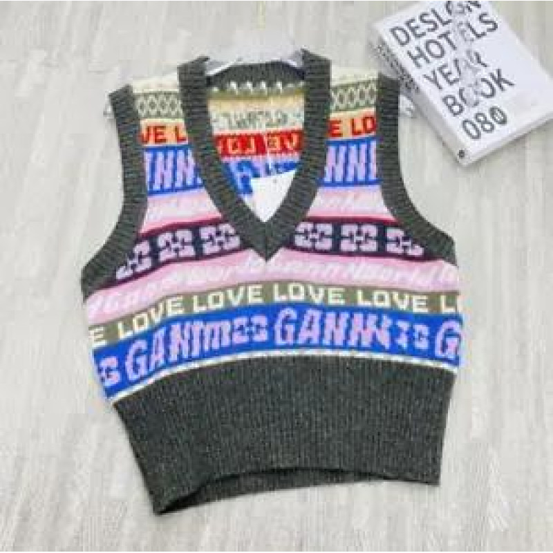Womens Ganni color matching V-neck wool blend knitted sleeveless Sweater vest