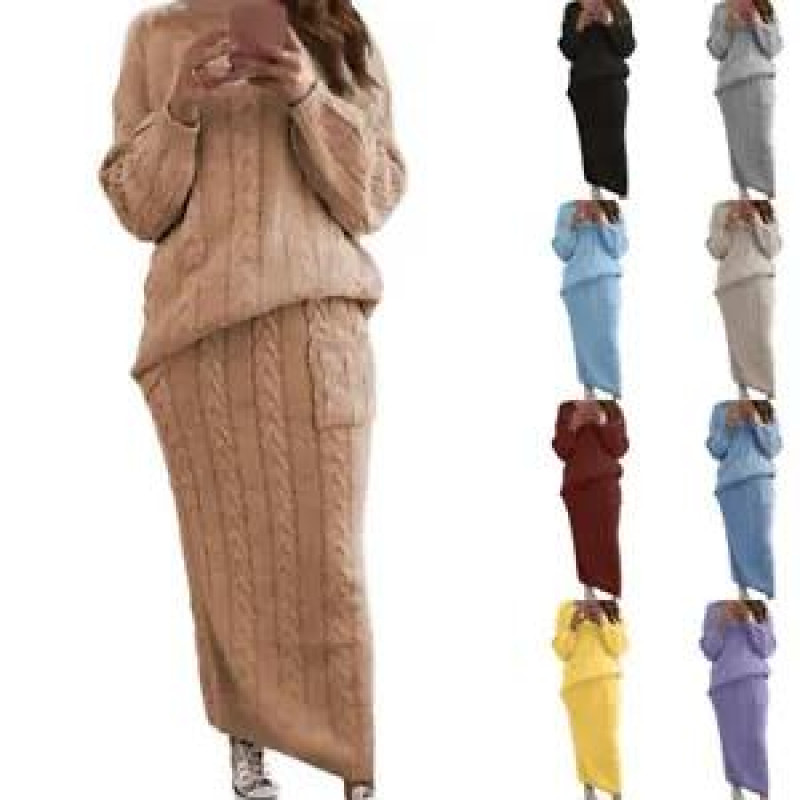 Women Chunky Cable Knitted Jumper Dress Ladies Sweater & Skirt 2-Piece Set S-5XL